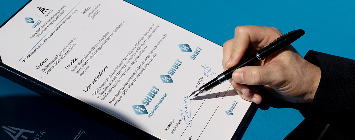 Buổi lễ ký hợp đồng Iniesta hợp tác làm đại sứ thương hiệu SHBET chính thức diễn ra vào tháng 11/2023 trên 1 du thuyền sang trọng ở Dubai. Đến ngày 15 tháng 12 năm 2023, SHBET thông báo Iniesta chính thức là đại sứ thương hiệu của nhà cái. Sự hợp tác hoàn hảo này chắc chắn sẽ mang đến một sân chơi hoàn toàn mới lạ, thúc đẩy nền tảng thể thao bóng đá phát triển và nâng cao giá trị nhân văn sâu sắc.
